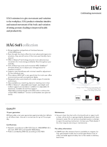The comfortable SoFi chair with headrest is designed to provide the support you need in your natural body position. The ergonomic shaping of the backrest prevents back pain when sitting for long periods. The mesh material of the backrest in light grey or black provides an airy feel that you will appreciate especially during summer weather. The chair is equipped with the HÅG in Balance technology, which allows the seat cushion to move smoothly forwards and backwards. The chair's plunger height is 200 mm, so the seat height ranges from 450 mm to 640 mm. This height is suitable for standard size office desks. The chair has the option of adjusting the tilt resistance, seat height and seat depth, including adjusting the lumbar support and headrest. Choose from a variety of upholstery colours for the ideal combination in your interior. The base is available in painted metal or in a combination with polished aluminium. The type of base is determined by the surface on which the chair will be used - castors for floors and carpets or glides. The chair can be accompanied by a footrest for unique seating comfort. Use the 3D product configurator to view your chosen model with all accessories.