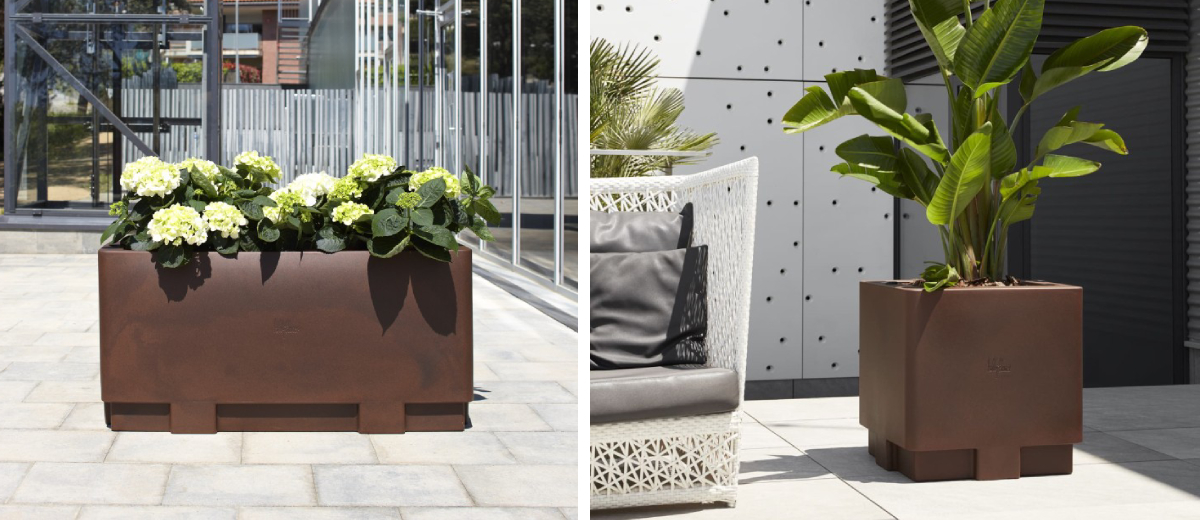 The modern and practical design of the CITY self-watering planter will bring style to your patio and interior. The 100% recyclable polyethylene in two available colours that this piece is made of will easily withstand all weather conditions. The planter can also be completed with practical castors for better mobility. You will also find a square version in the catalogue. So give your flowers a touch of pizzazz and save yourself the hassle of frequent care for your oasis!