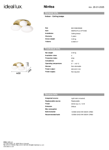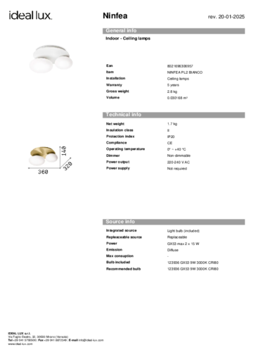 The NINFEA designer ceiling light will become a striking feature not to be overlooked in office and home interiors. Robust shapes on a stable plate base fixed to the ceiling are an expression of modern retro elegance. However, the model will also appeal to fans of the beauty of spherical glass structures. The flat metal base is available in a lacquered white or bright brass finish. The main structure consists of spherical milky glass shades in the number chosen. You can choose 2 or 3 light sources. Take advantage of the extended warranty for 5 years!