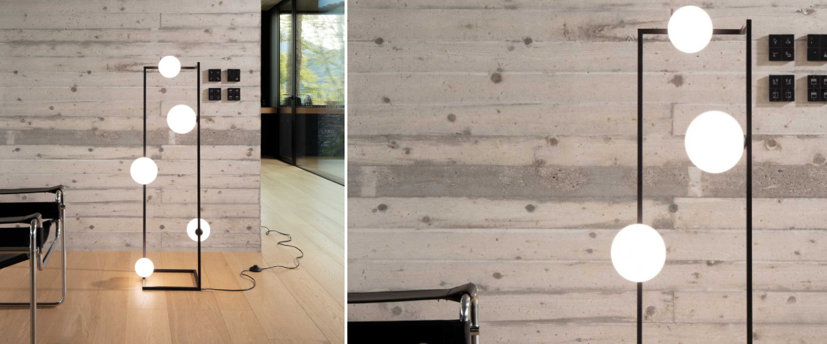 TheANGOLO designer floor lamp will become a new work of art in your interior. This unconventional and bold light truly breaks all conventions! The design rises from a square-shaped metal base. The light's upward-turning frame is also metal and painted black or in a satin brass finish. The frame is flanked by four milky coloured round blown glass diffusers in different sizes. Banish boredom with the unconventional ANGOLO ceiling light! We offer an extended five-year warranty on the product.