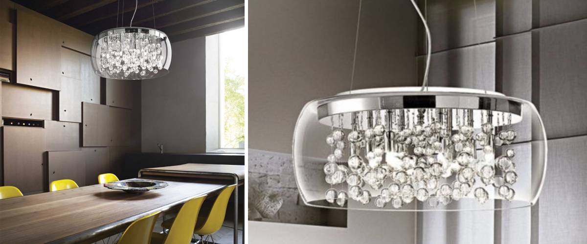 TheAUDI-80 design pendant lamp was created for all of you who want a truly exclusive and stylish lamp. This sturdy light in a very elegant and modern design, has a chrome frame and a distinctive diffuser made of blown glass, which we offer in transparent or smoked versions. Inside there are spherical ornaments in transparent glass suspended on metal cables. The entire structure is held by steel cables, which can of course be adjusted in length as required. We recommend the AUDI-80 designer pendant lamp for homes, offices, as well as public and commercial spaces where you need to make an impression. Choose from 2 sizes to find the right one for you!