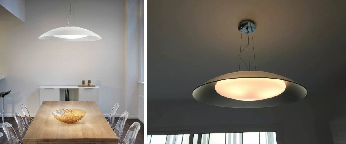 Thetimeless LENA pendant lamp is a modern lighting solution that will also succeed in a more classical interior. The light has a chrome frame and a large double glass diffuser. Everything is suspended on steel cables that can be adjusted in length. The modern, timeless LENA lamp, available in 2 sizes, is a great piece for the kitchen or dining room, for example, where it will brighten up your family table.