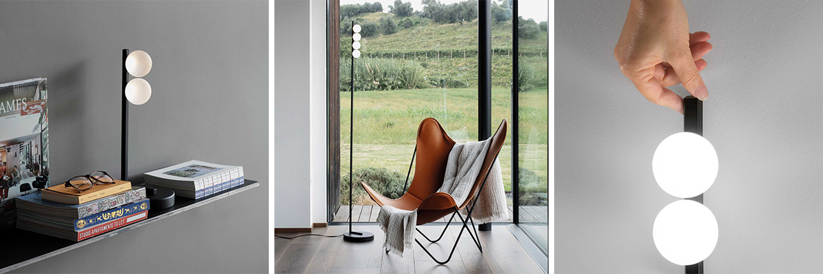 As the name suggests, the design of the PING PONG table lamp was inspired by the shape of ping pong balls. It consists of a metal stand and base with powder-coated or brushed brass finish and diffusers in satin clear acrylic. Also included is a driver and PVC cable with switch. The integrated LED module can be replaced with the help of a professional. So bring the modern charm of minimalism into your home or business. PING PONG is also available in a floor-standing version.