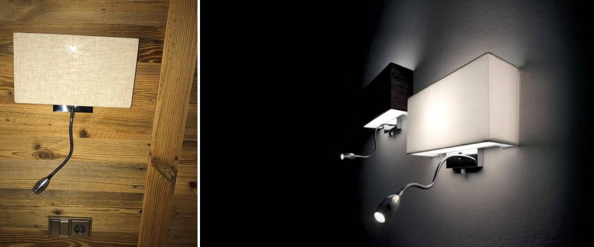 The HOTEL design wall light is a perfectly modern solution that is hardly noticeable on the wall. The block-shaped shade has a fabric cover in white. The diffuser is glass. You will also appreciate the practical additional LED source on the flexible arm. This model is available in white, all-white, all-black or beige. We recommend the light for commercial areas, office corridors and hotel rooms, for example. With its uncomplicated appearance, the HOTEL design wall light is suitable for all contemporary spaces where it does not disturb the already established style line. It is a very practical, durable, utilitarian model without unnecessary extras.