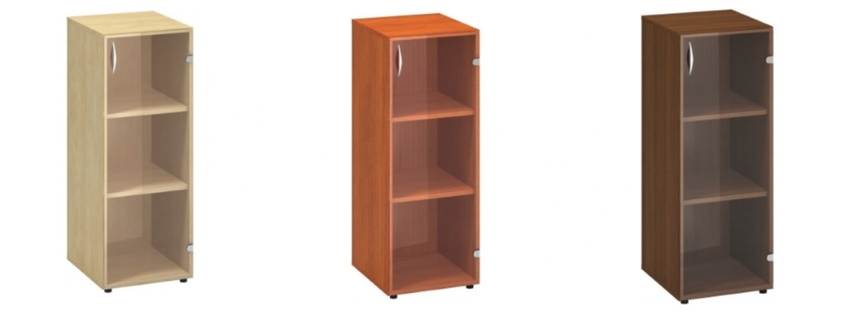 Office cabinet ALFA 500 with opening on the right side stands out for its quality workmanship with a stable construction. The cabinet is made of laminated chipboard, which is available in several variants - white, beech, oak, cherry, walnut and wild pear. The cabinet is divided into 3 storage modules. It has glass doors with a thickness of 6 mm. The cabinet is equipped with 15 mm rectification to compensate for unevenness of the floor. The cabinet is an ideal solution for both office spaces and home offices. Give your space a new charm with Czech tradition.
