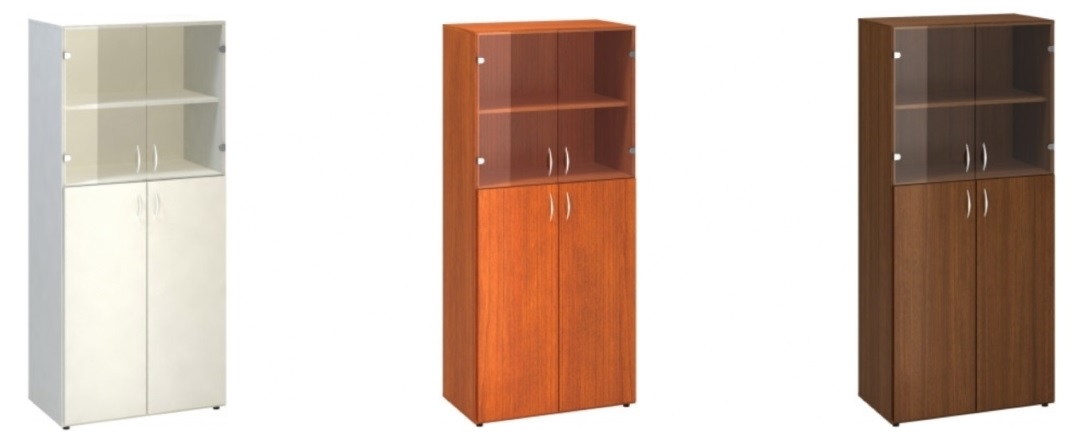 TheALFA 500 office cabinet stands out for its quality workmanship with a stable construction. The cabinet is made of laminated chipboard, which is available in several variants - white, beech, oak, cherry, walnut and wild pear. The cabinet is divided into 5 storage modules - 3 in the lower part with wooden doors and 2 in the upper part with glass doors. The cabinet is equipped with 15 mm rectification to compensate for unevenness of the floor. The cabinet is an ideal solution for both office spaces and home offices. Give your space a new charm with Czech tradition.
