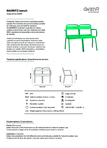 The products from the BIARRITZ collection are among the most versatile in the ISIMAR brand portfolio. Thanks to the wide range of colours available, the chairs, benches and stools can be easily adapted to any environment and blend in harmoniously. Like the other collections, this one is made from high-quality and 100% recycled and recyclable materials that can withstand even unexpected weather conditions.