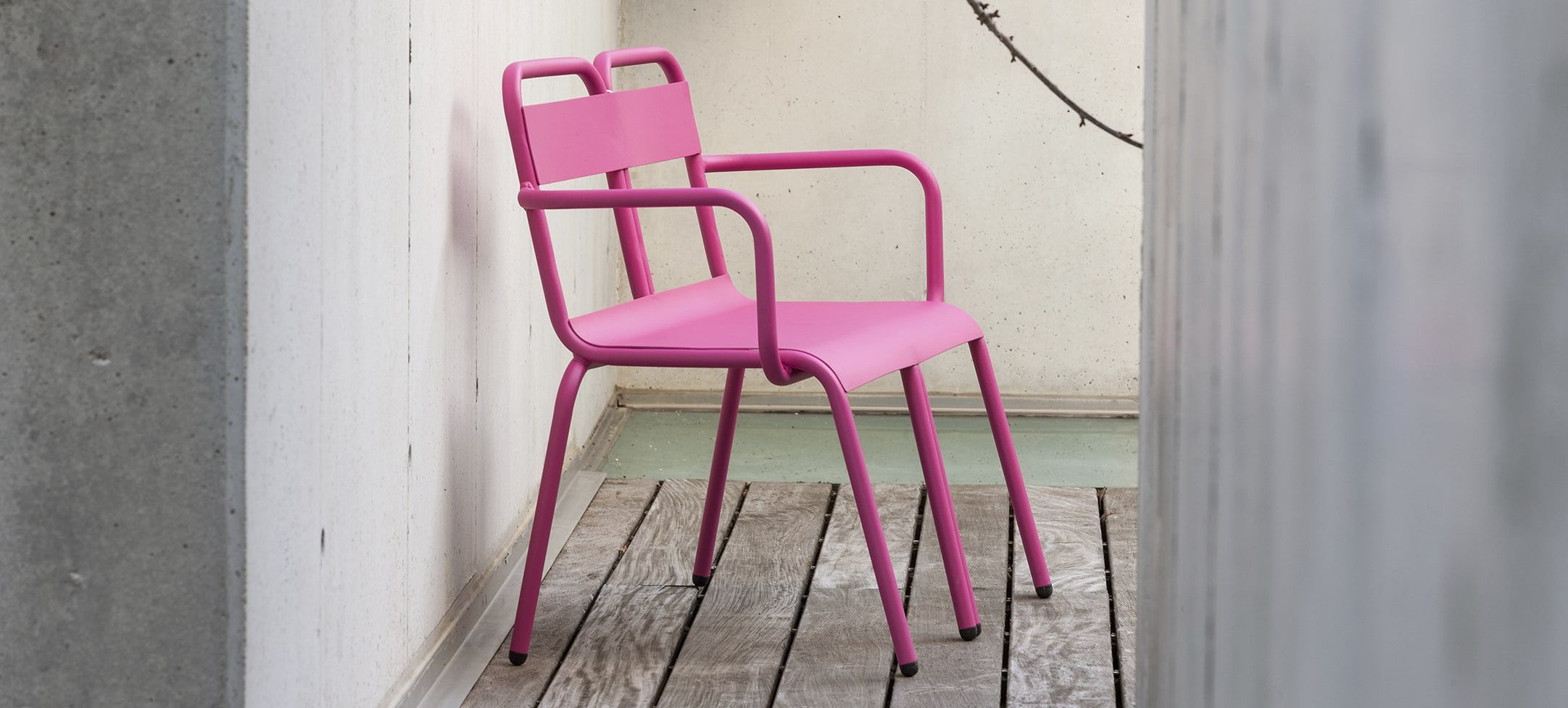 TheBIARRITZ bench with its minimalist design, which takes its inspiration from the Mediterranean, will impress every visitor, not only in your outdoor spaces. The comaxite-coated aluminium construction gives the bench its characteristic character and increases its durability. This also makes it suitable for both indoors and outdoors, and its stackability makes it a very practical piece for any occasion.