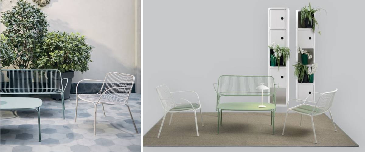 TheHIRAY Design Bench proves that you can even make outdoor seating look stylish. The modern and airy minimalist lattice construction is made of painted galvanised steel. It is therefore extremely resistant even to the vagaries of the weather in the garden, veranda or terrace. The product has been tested against sunlight and corrosion. We offer it in 4 attractive colours. The slender four-legged base is slightly bevelled, which gives the bench perfect stability. And of course there are elegant armrests. Get the HIRAY bench with a table from the same collection. A piece not to be missed at any garden party!