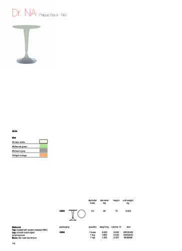 The Dr. Na plastic table combines functionality and beauty. It is resistant to temperature changes, characterised by design elegance, practicality and easy maintenance. The table top is scratch-resistant, making it suitable for outdoor use. You can choose from several subtle shades and the diameter of the top is 60 cm, the diameter of the base is 45 cm and the height is 73 cm The perfect duo can be formed with chairs from the same collection. So ensure comfortable seating for indoors and outdoors.