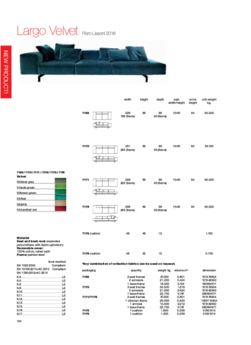 The Largo upholstered sofa was created by the world-famous designer Piero Lissoni. It is a versatile piece with a solid sturdy backrest, armrests and extended seating. It has been created in right and left-hand versionsand six different upholstery colours in 100% cotton velvet to make it easy to match with the rest of the room. It will look elegant both in the living room and perhaps in a hotel or cafe. Its soft arms will provide a pleasant rest and will delight the eye of any design lover. The dimensions of this piece are 298 x 96 x 69 cm (width x depth x height). It is possible to order a corner sofa with 2 to 3 additional seats, a set of 2 cushions (48 x 48 cm) or a longitudinal cushion (35 x 48 cm). Please contact us if you are interested.