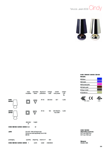 TheCindy lamp was created by the world-famous designer Eugene Quitllet. It combines seventies inspiration with new shapes and metallic colours. The metallic finish brings a touch of luxury and elegance to the interior. Choose from several shiny metallic colours. Invite originality into your home and give a new face to your living room, bedroom or even your café. The dimensions of this size are 23,6 x 42 cm (diameter x height), the source is 15 W LED and the bulb type is E27.