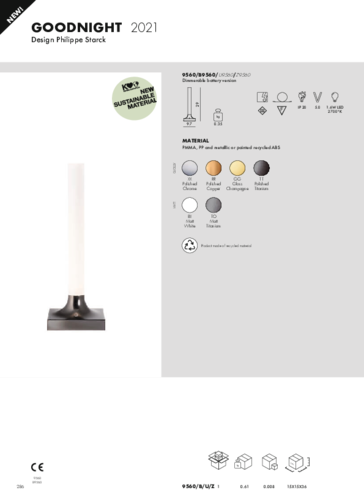 TheGOODNIGHT table lamp, which with its name gives its owner a loving "good night", comes from the workshop of the renowned designer Philipp Starck. Its simple, slender design, reminiscent of a tall wax candle without a flame, is made of durable polypropylene and gives off a matt glow along its entire length. The sturdy base of this modern lamp is interesting, acting as a pedestal for the sculpture. You can choose it in 6 attractive variants. A minimalist's dream come true!