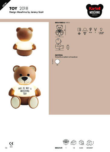 The Toy children's table lamp will brighten up not only the room, but also the children's eyes. It's a quirky interpretation of the iconic Moschino bear and will bring style to any room. The size of the bear is 25 x 24 x 30 cm (width x depth x height).