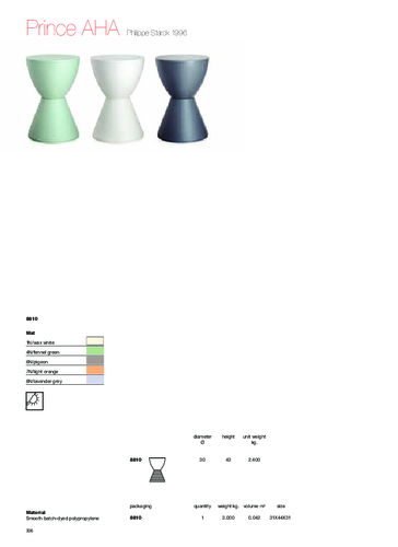 This stylish Aha coffee table/stool is a collaboration between Kartell and world-renowned designer Philippe Starck. The Prince Aha plastic table stands out for its lightness and multifunctionality. Its durability makes it suitable not only for indoors but also for outdoors. Its versatile shape and practical size allow for multiple uses, it can serve as a table and a stool. You can choose from several pastel colours.The dimensions of this playful model are 30 x 43 cm (diameter x height). So spice up your living room or perhaps a corner in a café with this unique design.