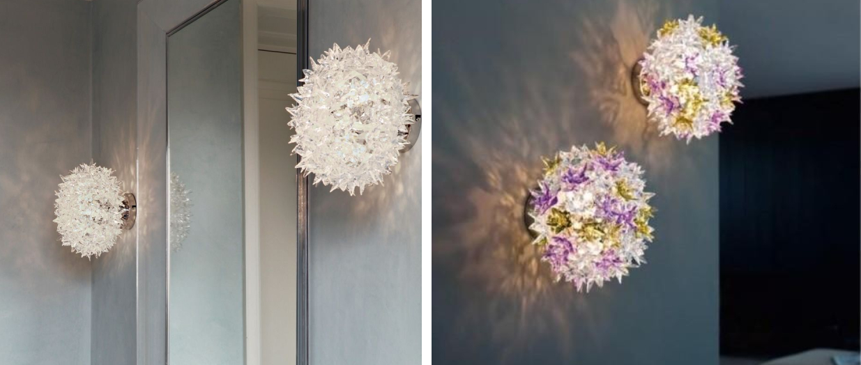 The Bloom luminaire was created by world-renowned designer Ferruccio Laviani. It consists of a plastic structure from which small three-dimensional flowers literally bloom. Thanks to the unique structure, the reflective properties of the material stand out , and the unique surface reflects magical reflections of light.So let yourself be carried away by a breath of luxury and shimmering elegance and decorate your bedroom, living room or stylish café. The dimensions of the luminaire are 28 x 22 cm (diameter x height) and the source is 3x 4.5 W LED (G9 bulb). You can choose from several subtle colour variations.