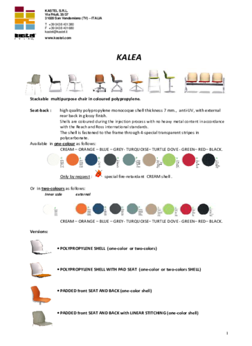 KALEA furniture never gets tired, not only thanks to its original design. It is also exceptional for its high quality, which is supported by the CATAS certification of products for stressed public spaces. This certificate guarantees compliance with current EU standards for safety, strength and durability of furniture, so we can recommend it for busy public and commercial spaces. Polypropylene is dyed in accordance with international standards without the use of heavy metals.
