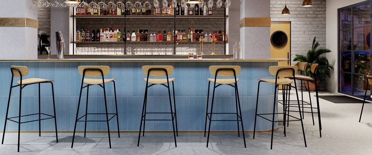 High bar stools are mainly used in restaurants, bars, bistros and other eating establishments. It is characterised by a seat height of around 75 cm. For a high bar stool, it is recommended to have a bar top between 110 and 115 cm high.
