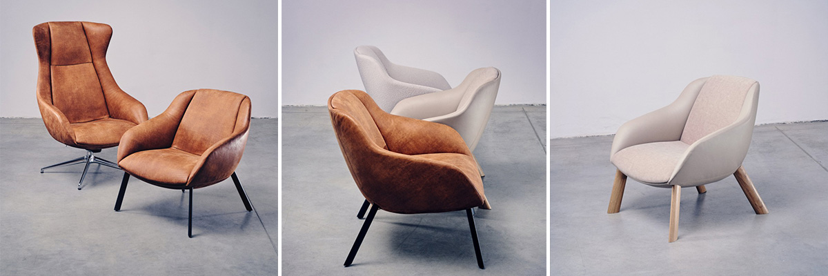 The TERRA LOUNGE collection, designed by Orlandini Design, combines comfort, timeless design and a sustainable approach to production. The chairs are available in two heights, with several variations of legs and a complementary footrest, and are produced locally with an emphasis on responsible and sustainable production. The shell allows the combination of different upholstery fabrics. This makes it possible to create an interesting design contrast while choosing a more durable material for parts that are more stressed in use. The collection is designed with longevity and easy recycling in mind. The design allows for easy disassembly and reuse of the material at the end of the product's life.
