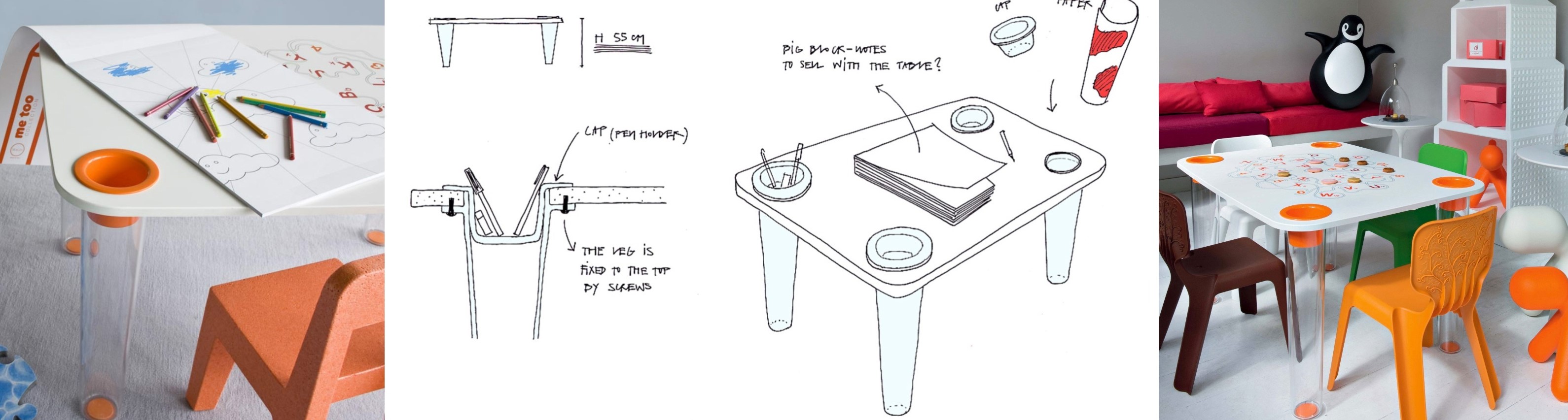 With the versatile children's table from Magis you can't go wrong, the table has several uses - it can be used as a dining table, work table or play table. You'll love its cheerful and practical design and it's a great fit for children's rooms, nurseries or play areas. Designer Marcel Wanders has done a lot of work on it, the table has been designed in several versions and hides surprising features. The table's legs are made of transparent polycarbonate and, depending on your needs, can be supplemented with a practical pencil cup at tabletop level - finished drawings can then be immediately inserted into the transparent legs, making the table even more distinctive. The table top is made of MDF and covered with polymer, and can be either pure white or with cheerful interactive motifs of letters and numbers to stimulate children's playfulness and thoughtfulness. Little Flare is a popular solution for nurseries and playrooms where multiple children need to be seated at once. The tabletop is available in both short and long versions, with short tables having four legs and long tables having eight legs. Magis also offers a colouring book with pictures of Marcel Waders to accompany the table.