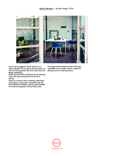 The large, minimalist Passe-Partout table will elevate any interior or exterior. Practical yet stylish, the table has been ingeniously designed for everyday use almost anywhere. Thanks to its dimensions, the table is perfect for large spaces where a large number of people need to be seated - it is very popular in offices, meeting rooms and even restaurants. The table stands on four legs made of extruded aluminium, which are further painted with comaxit, and the table top made of steel is also painted. The Passe - Partout table is available in several sizes and in white or black.