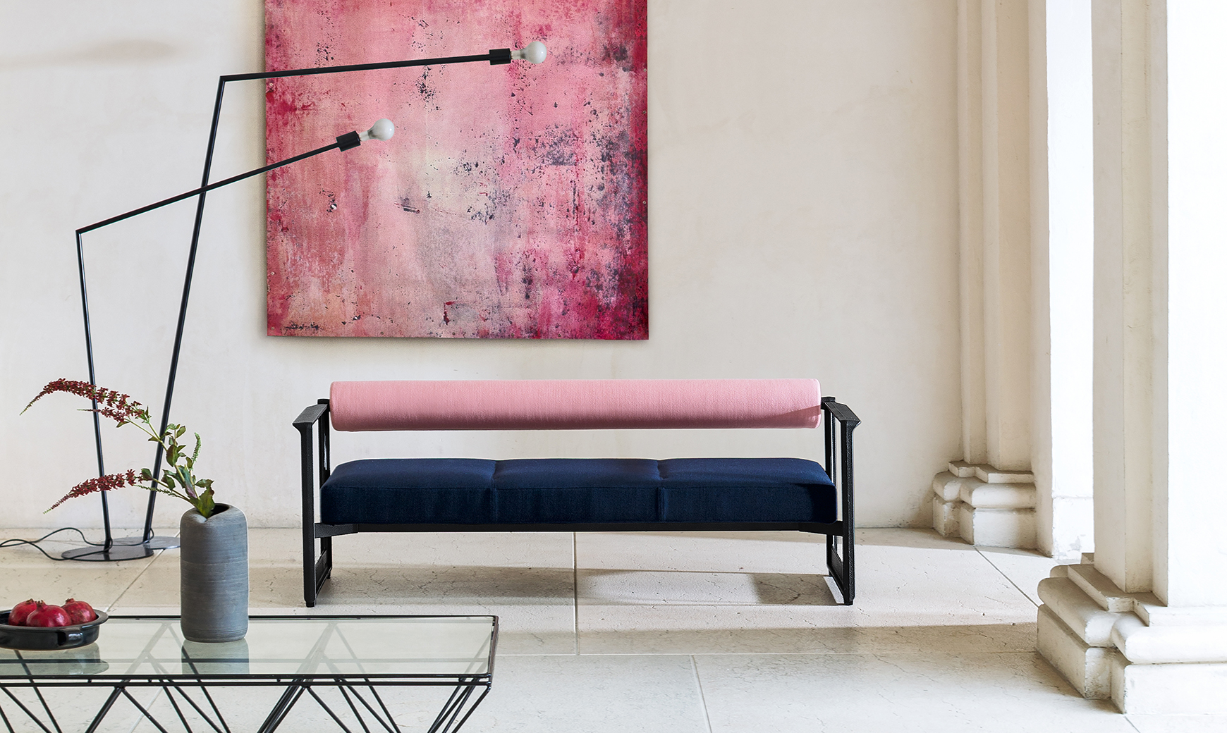The Brut sofa, solid and stable at first glance, will win you over with its functionalist design. The frame of the two-seater sofa is made of cast iron painted with polyester in anthracite, the cushions are made of polyurethane foam with a removable fabric cover. You can choose from a variety of fabrics. Please contact us for more information.