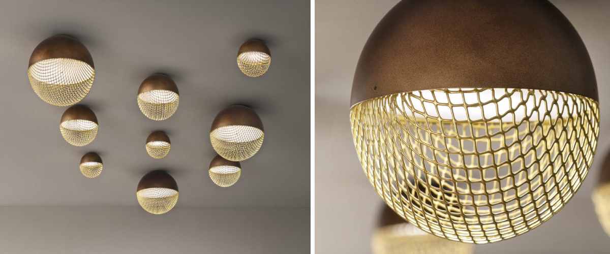 TheIGLÙ designer ceiling lamp offers a distinctive and original look that cannot be overlooked. You can see various motifs in it, but it reminds us most of basketballs or a model of the planets of the solar system. The ceiling lamp will be suitable, for example, in your living room or dining room, or as a novel chandelier for offices and commercial spaces. The design of the lamp is very simplistic. The base is fixed directly to the ceiling. The diffuser is then suspended downwards. This spherical diffuser is half made up of a solid sheet of metal and the other half of a rounded metal grid. The design is available in several versions of matt or glossy painted metal. Retro or modern? It's up to your interpretation and imagination! The model is available in 3 sizes, which can be creatively combined together.