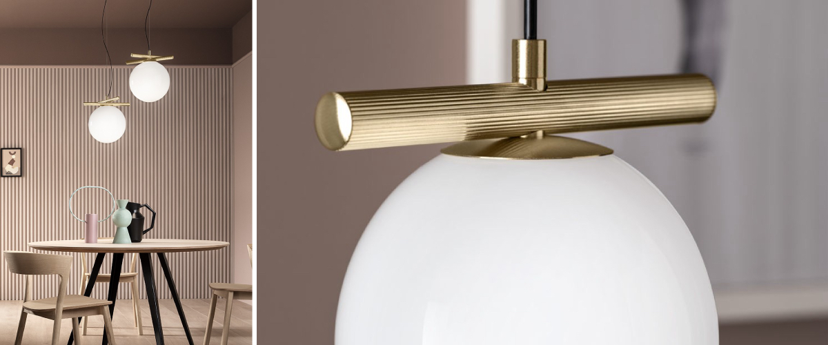 Theelegant POSY pendant lamp is a reflection of balance and simplicity. The entire collection is designed as a combination of different compositions of glass spherical diffusers made of opal milky Murano glass suspended from delicate metal stems. The structure of this luminaire is suspended from the ceiling by a supply cable. The diffuser is embellished by two stems laid over each other with a decorative surface texture in the form of grooves. They are offered in several finishes of electroplated or matt lacquered metal. You can choose from four sizes of hanging lamp. With its natural beauty, this piece will brighten up private and commercial interiors and bring a generous dose of elegance to them.