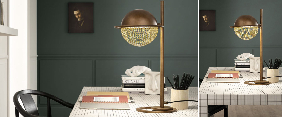 Theelegant IGLÙ table lamp offers a distinctive and original look that cannot be overlooked. You can see various motifs in it, but it reminds us most of a basketball hoop or a model of a planet with a ring. The table lamp will not only fit on your bedside table, but also on your desk, whether in the home office or in the office. The structure of the lamp is very simplistic. It consists of a stable base, from which the mast extends upwards. From this, a spherical diffuser emerges, half of which is made up of a solid sheet of metal and half of which is a rounded metal grid. The structure is available in several versions of electroplated or matt-painted metal. Retro or modern? It's up to your interpretation and imagination!