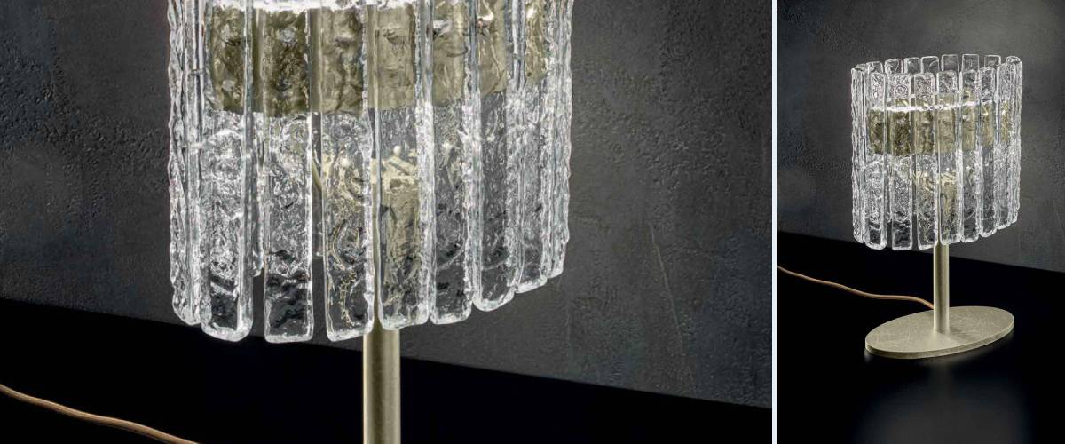 An icy crown made up of precious stalactites - that's exactly how the VEGAS TL G table lamp from MASIERO in metal and glass looks. The lamp has a dimmable LED bulb and can thus conjure up a truly romantic atmosphere. The profiled glass slices forming the shade will dazzle you with an interesting play of light. It fits wonderfully into a bedroom, lounge or luxury office. Anyone who admires natural shapes and natural elegance will appreciate it. The VEGAS TL G table lamp will be a dream come true for anyone who appreciates novel design!
