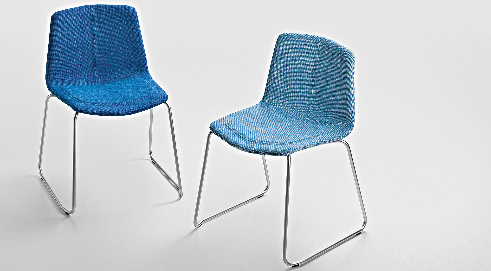Chairs keep us company almost all day long. In the morning at early breakfast, during the day at work and at evening snacks with friends and family. It is therefore important not to underestimate their selection. The minimalist STRATOS 1051 chair boasts a slatted metal base and upholstered shell. The upholstery is available in fabric, leatherette, custom material or leather and offers a wide range of colours. Which option will you choose?
