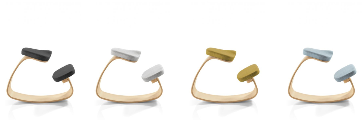 How to relieve back pain when sitting for long periods at work? Try the ROKKO balance kneeler. The construction is made of 17 mm thick moulded beech plywood, making it not only practical but also stylish. It can hold up to 100 kg of weight. You can choose from several types of upholstery to suit your taste. The kneeler offers all the ergonomic advantages of the ERCOLINO stool, but with even more seating dynamics. You can either sit on your sides with your feet on the floor or with your knees on the front upholstered support, with your legs tucked back. Balancing engages different muscles and thus activates, straightens and strengthens your back. Only by changing positions while sitting do you protect your body from becoming weak. So keep a handy helper handy and intersperse time spent in a chair with an active way of sitting.