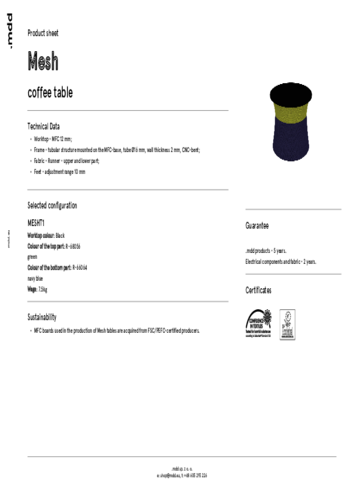 TheMESH design coffee table will shatter your previous ideas about the seriousness of coffee tables. Even this piece of furniture by MDD can be really playful, cheerful and imaginative. The metal structure of the sturdy base, which is tapered in the middle, is covered with upholstery in the colour and material you choose in our configurator. The second upholstery option is a fabric strip under the table top. Here you can create a striking contrast or really play with the styling. The MDF round table top is available in 4 colour finishes. The MESH table is available in 2 sizes - wider or taller. However, they also look great together!