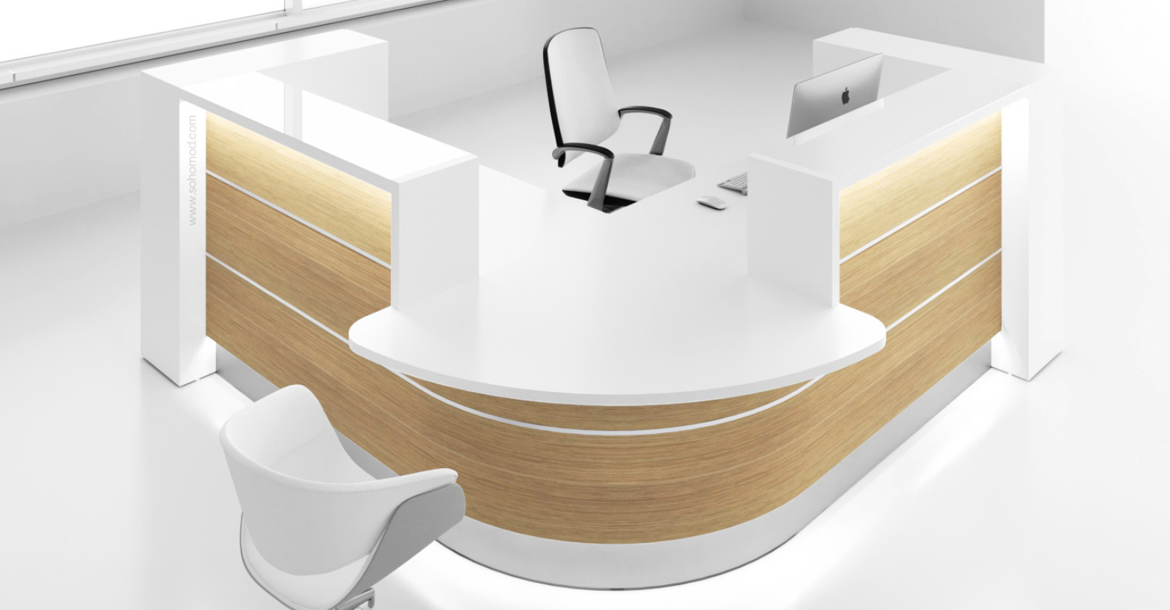 Thanks to the modular design, you can adapt the installation to your needs. The Valde range knows no boundaries! Available in corner, semicircular, straight or even irregular countertop shapes. The lowered panel allows comfortable communication even for people with disabilities.