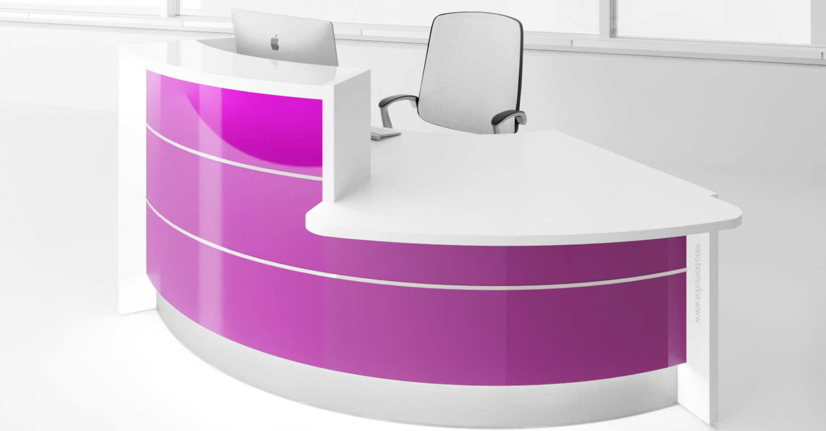 Modern and dynamic shapes, a background that meets all the demands of today's reception desk. This is the Valde range from MDD. At first glance, it impresses with its attractive combination of glass, aluminium and high-gloss laminates. The mix of these premium materials creates a soberly elegant whole.