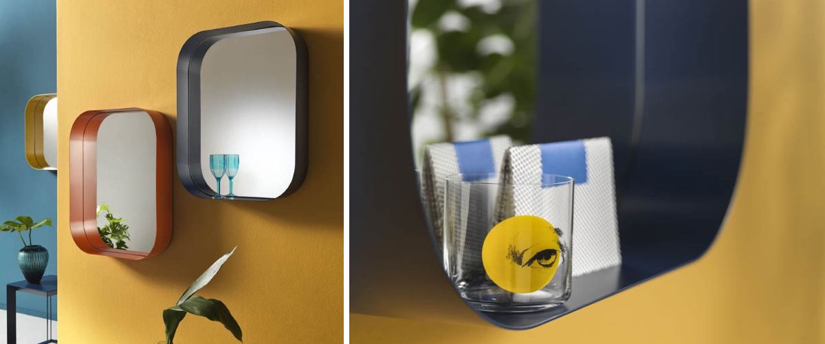 The DILETTA designer mirror is a perfectly original and imaginative accessory that will dazzle you. Not only does it look good, but it is also extremely practical. In a modern rectangular shape with rounded corners, the mirror has a distinctive frame made of lacquered metal, which also serves as a handy storage area for whatever you need. Or you can creatively decorate it with an interesting decoration. In addition, the metal frame can be selected in a wide range of colours. We recommend the DILETTA mirror, for example, for the bedroom or study, where its bright appearance will lift your mood every day.