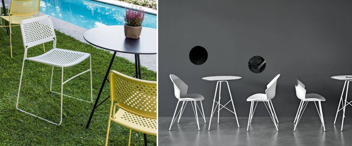 The imaginative all-metal BREAK table boasts a four-legged base made of lacquered metal, giving you a variety of modern, bold shades to choose from. The table top is made from the same material and finish as the legs. There is also a choice of an outdoor finish and the table is then suitable for outdoors. You can place it on the terraces of businesses or in your garden without any worries. The table is available in 2 sizes.