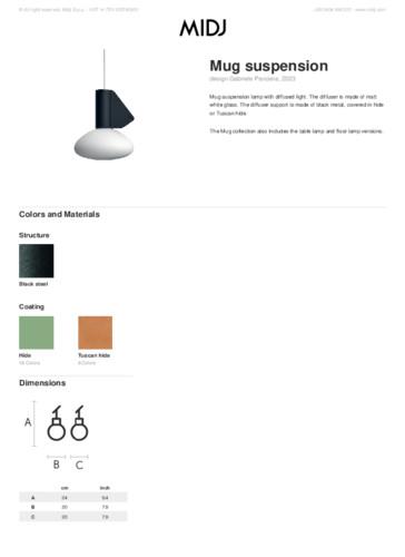 TheMUG design pendant lamp is minimalist and versatile, therefore perfectly timeless. You will appreciate its sober look and high-quality design in both modern and classic interiors. The lamp body with decorative wing is upholstered in leather in the finish and colour shade you choose in the configurator. The robust, flattened bell-shaped shade is made of milk glass. The uses of the MUG lamp are wide, you definitely can't go wrong with this choice! The model is also available in a table version.