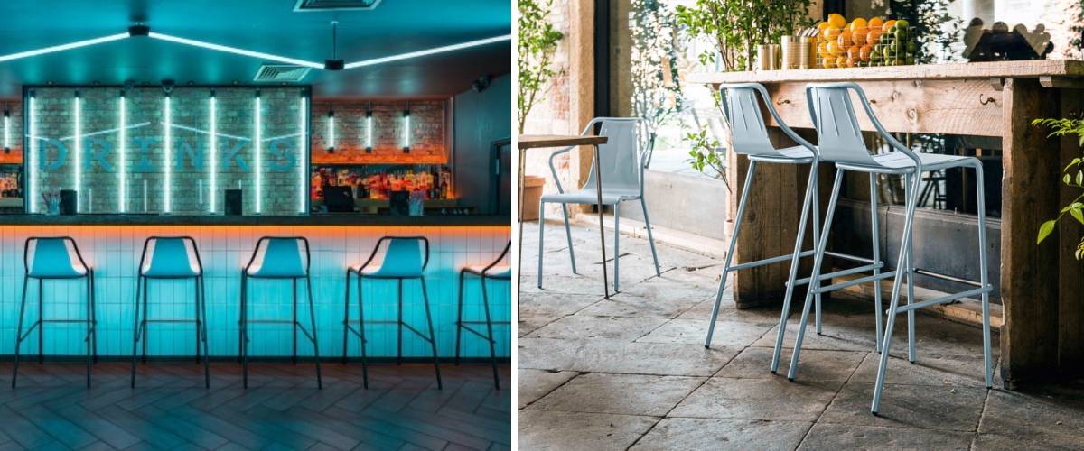High bar stools are mainly used in restaurants, bars, bistros and other eating establishments. It is characterised by a seat height of around 75 cm. For a high bar stool, it is recommended to have a bar top between 110 and 115 cm high.
