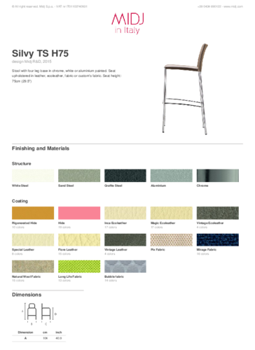 SILVY is a collection of modern chairs designed by the Italian brand MIDJ. The range is airy, elegant and last but not least practical. The whole collection is easily divided into two different versions. Thus, all chairs can be either with smooth backrest upholstered in different fabrics or exclusively in genuine leather with backrest defined by double stitching. The collection includes several types of chairs and bar stools. They will particularly stand out in all modern kitchens, dining rooms and restaurants. But they can also brighten up meeting or conference rooms, where you will especially appreciate the stackable versions.