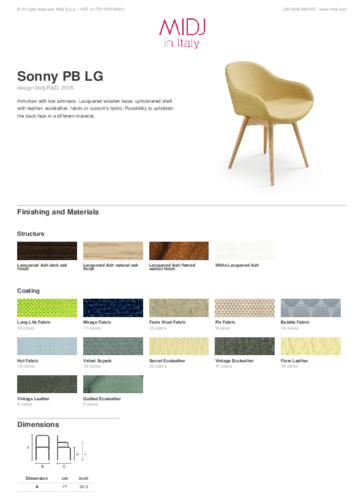 The SONNY collection reflects the style of the Italian brand MIDJ and its philosophy of soft design, which it aims to achieve not only by choosing soft materials, but also durable materials such as wood and metal. This range meets their challenge. The warmth of fabric and leather is combined with wood or metal bases in many colours and shapes. The seat cushions can be combined from two different fabrics of your choice. Please do not hesitateto contact us for this option.