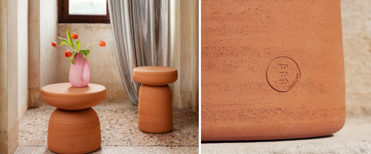 TheTOTOTÒ design coffee table was created for MINIFORMS by the creative duo Paolo Cappello & Simone Sabatti. The robust structure is made of terracotta fired at extremely high temperatures. This allows the material to achieve its characteristic earthy colour. The top masters of their trade then shape the table into its iconic full shape with a massive base and circular top. You can then place your table outdoors without fear of weather conditions, where its natural appearance is also a perfect match. Serve refreshments in style or decorate TOTOTÓ with flowers, the result will always steal the eye. The model is available in several sizes.