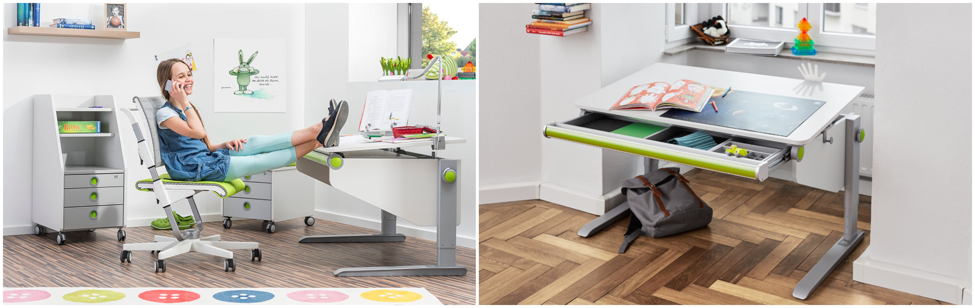 The German company MOLL produces furniture that stands for healthy backs and healthy growth for children. The children's growing furniture, specifically tables and chairs, adjusts to your child's size. MOLL has many years of experience in the field of furniture and ergonomics and is a top manufacturer of children's growing tables and chairs, as evidenced by numerous awards for ergonomics, design and for quality workmanship.