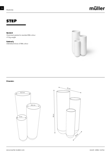 TheSTEP umbrella stand is exactly the kind of unobtrusive accessory whose perfect practicality you realise the moment it's missing in your home. No hallway is complete without a handy umbrella stand that will make sure you don't have a flood in the room even on rainy days! The model from the German brand Müller is made of lacquered metal and can be chosen in a variety of trendy colours , including metallic or pearlescent variants. The stand consists of a total of 3 containers with different diameters and heights, so the stand is not boring in its appearance. Get ready to imagine your everyday life without it!