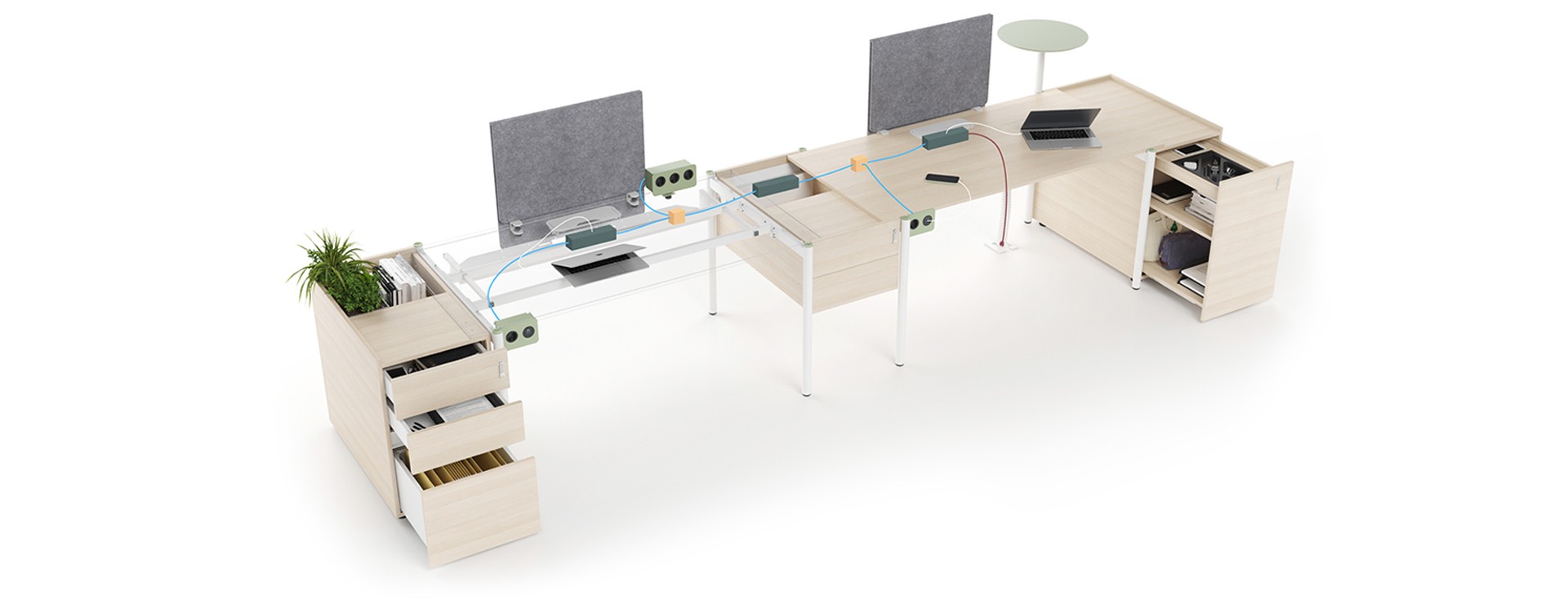 In the ZEDO collection, you will find work and meeting tables, desk accessories, containers and acoustic screens in many different dimensions. To help you get a better idea of the wide range, we have prepared a small summary. For more information, please also take a look at the datasheet, which you will find for each product in the Downloads section.