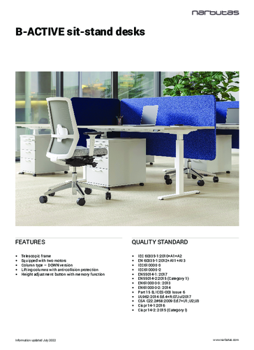 NARBUTAS is a modern and innovative Lithuanian company that specialises in office furniture ranging from reception desks, work desks, storage and soft furnishings to bespoke furniture that is an interior design solution for the perfect workplace. The company's portfolio is divided into several product lines for the modern office. NARBUTAS furniture is built on the highest international quality standards. The product certification guarantees the client that the furniture is safe, durable and ergonomic. The products are designed by experienced engineers from the innovation group who evaluate all safety and ergonomic requirements. The company prides itself on its responsible approach, whether towards its employees, clients, but also towards society as a whole and, of course, the environment.