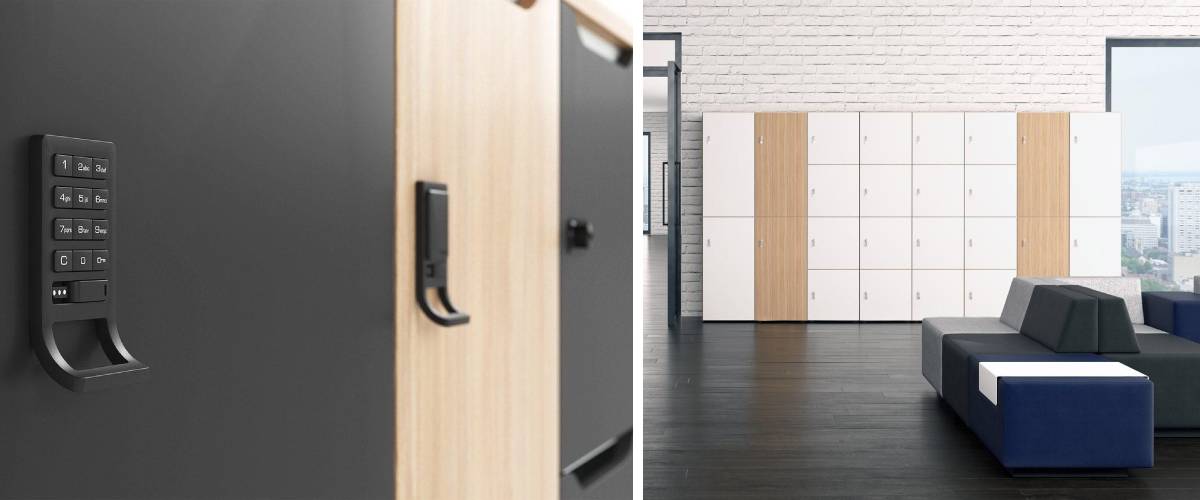 In addition to the classic cylindrical key system, we also offer combination and electronic locking options that can be unlocked using a code or card. Lockers with electronic locks can simply be assigned to a specific person or used on a short-term basis for individual visits.