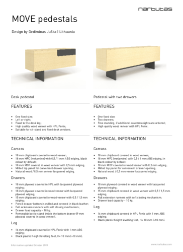 MOVE&LEAD 200x85 height adjustable work table with chest of drawers (L)