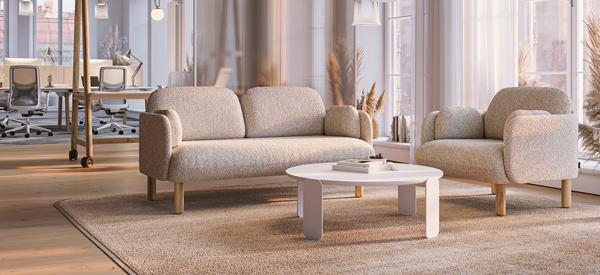 At home in the office. This motto can be fulfilled with the comfortable MYAMI sofa. In addition to offices, its flowing lines fit in reception areas, lounge areas, hotel lobbies and home offices, where they create a welcoming and inspiring environment. The construction made of pine, plywood and chipboard ensures solidity and stability, while superior comfort is provided by HR foam of various densities. Upholstery is available in a range of colours and materials including the highly desirable bouclé fabric. The base is made of ash wood in light or dark stains. The MYAMI collection offers sofas and armchairs with different types of base. Explore it and choose seating to suit your stylish space!