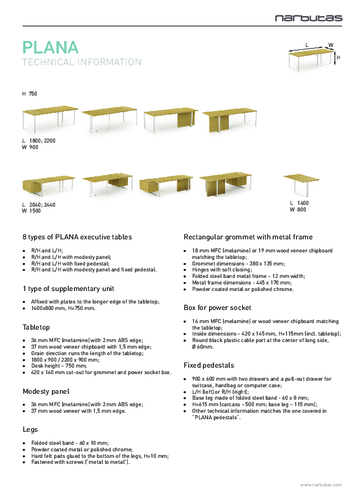 PLANA tables are made of 36 mm thick melamine or veneer with a 2 mm ABS edge and stand on a lacquered or chrome base.
